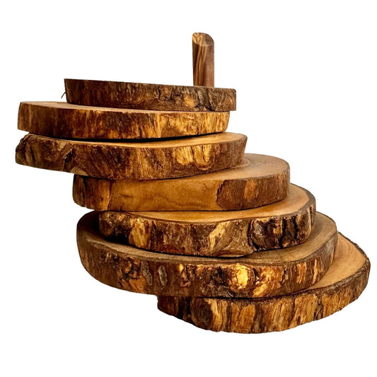Olive Wood Coaster Set with Holder -7 Pcs